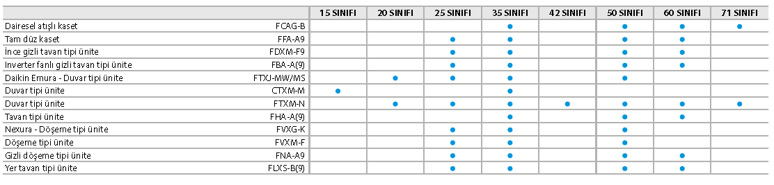 › Geniş iç ünite aralığı: VRV veya Daikin Emura, Nexura ... gibi şık iç