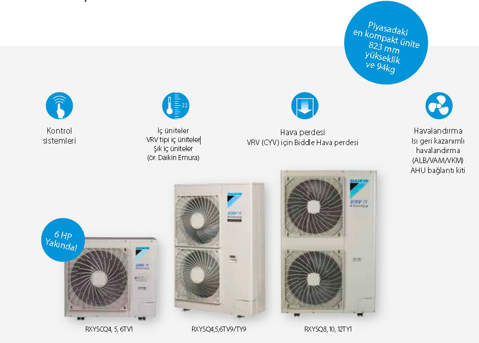 RXYSCQ4, 5, 6TV1 | RXYSQ4,5,6TV9/TY9 | RXYSQ8, 10, 12TY1 VRV IV S serisi ısı pompası