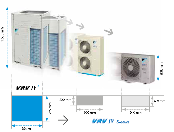 › Daikin VRV IV S kompakt serisi, kompakt boyutları
