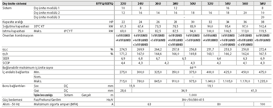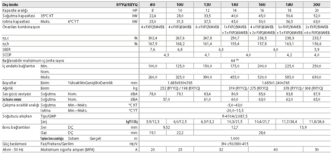 RXYQ-U ile ilgili tüm teknik bilgilere my.daikin.eu adresini