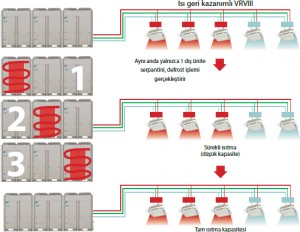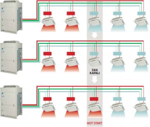 - Yüksek entegre ısıtma kapasitesi (iç üniteler ısıtma sağlamaya devam eder).